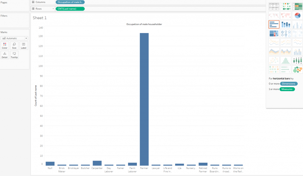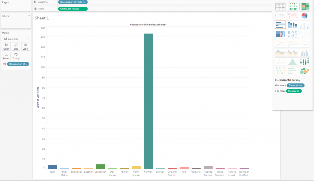 21-Drag “Last name” from Dimensions to Rows, and “Occupation of male householder” to Columns.